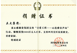 2013年雅安芦山捐款两千万